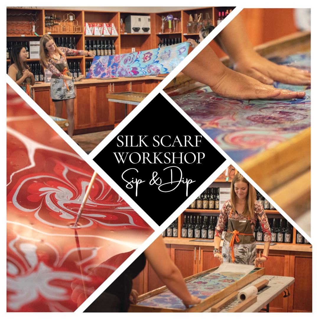 Tickets include all supplies to make your silk scarf and a glass of wine from Noble Ridge Winery. Non-alcoholic options available.
