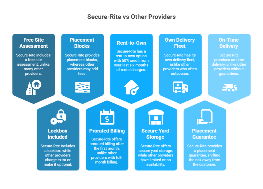 Anyone can rent a storage container to you. But if you value clear communication, flexible options, and no billing surprises, Secure-Rite is built for you. These nine perks were designed to solve the most common pain points our customers share: Delays, fees, and unanswered questions.